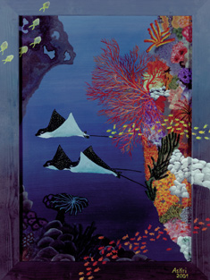"Gleitflug der Adlerrochen" im Format 50 x 70 cm in Acryl auf Leinwand von Astrid Krischun 2001