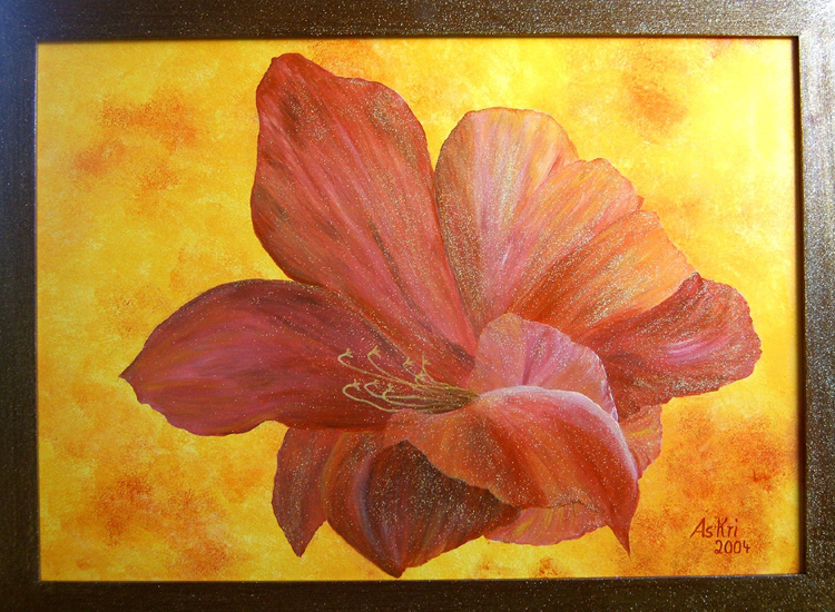 "Rotgoldene Amaryllis" im Format 50 x 70 cm in Acryl auf Leinwand von Astrid Krischun 2004