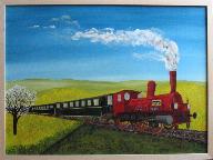 | "Dampflok auf Großer Fahrt" im Format 50 x 70 cm in Acryl auf Leinwand von Astrid Krischun 2003