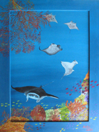 | "Tanz der Mantas" im Format 50 x 70 cm in Acryl auf Leinwand von Astrid Krischun 2003