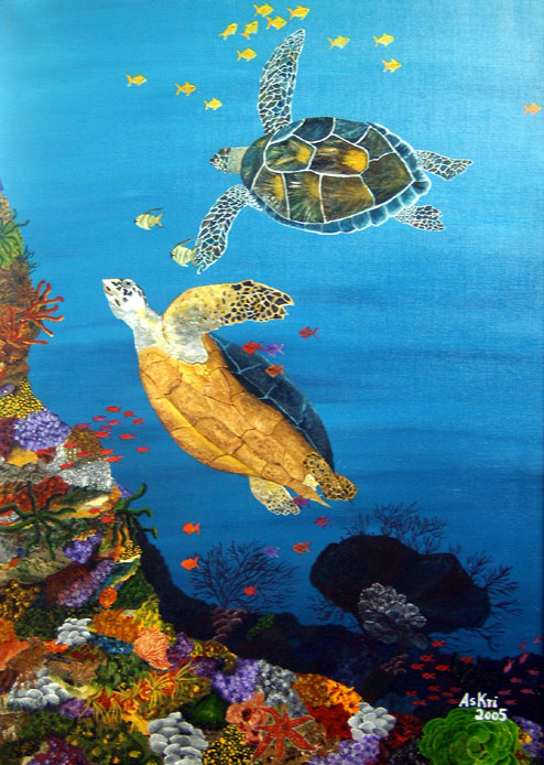 " Schildkröten am Riff " Format 80 x 107 in Acryl auf Leinwand von Astrid Krischun 2005 |
