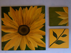 " Sonnenblume " Format 70 x 70 bzw. 30 x 30 cm in Acryl auf Leinwand von Astrid Krischun 2005 |