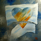 "gestütztes Herz" im Format 50 x 50 cm in Acryl auf Leinwand von Astrid Krischun 2004